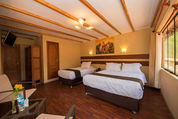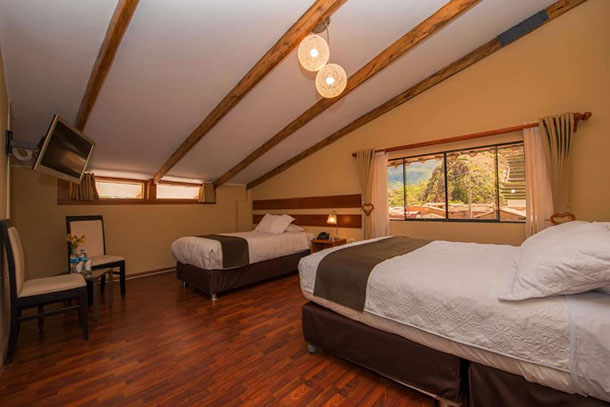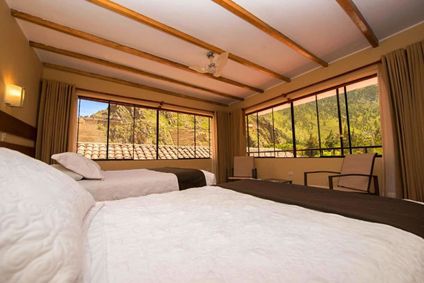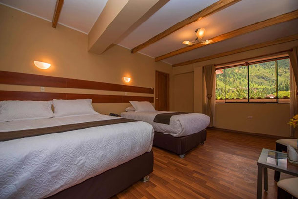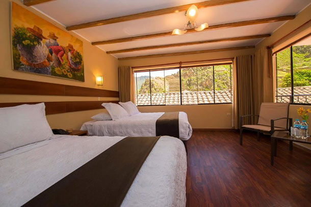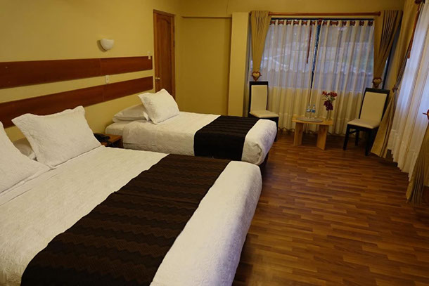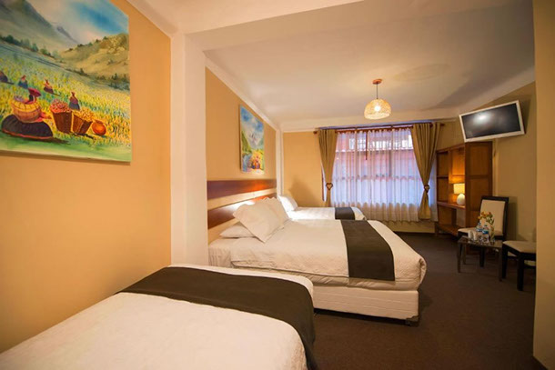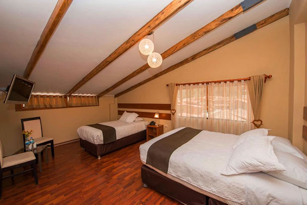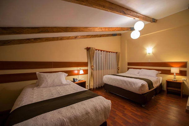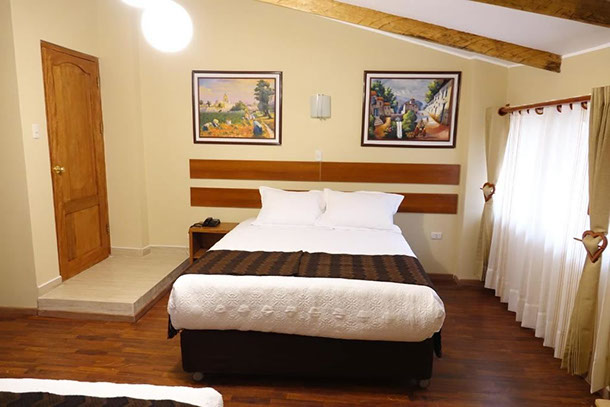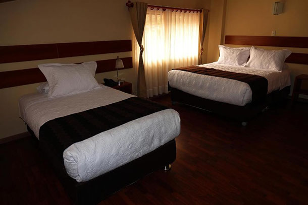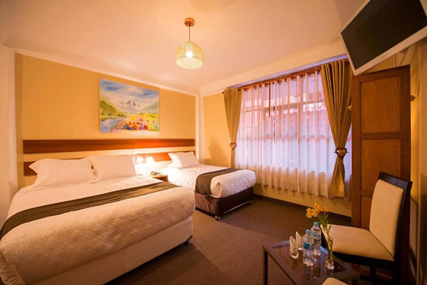 (2) Queen + Single bed Located on the second floor overlooking the inner courtyard of the hotel and one of the most important mountains "Pinkulluna". The rate includes buffet breakfast with variety of fresh fruits, yogurt, granola, cereals, a la carte eggs, pancakes, variety of breads (wheat, sesame, vegan bread, white bread), hot drinks like different mates, Orange juice, papaya, strawberry jelly, elderberry, aguaymanto, fresh milk,